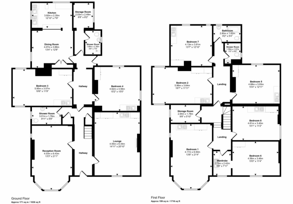 | First Floor | Six Bedrooms | Room | Storage | Bathroom/WC | Shower Room/WC |