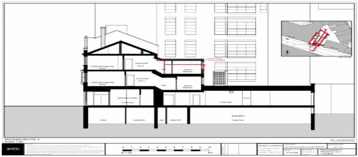 | 20/0027/F | Change of use from retail (A1) to a Public House (A4) at ground floor and basement and 4 self-contained flats (C3) on the 1st-3rd floors together with construction of a second floor rear extension, replacement of the shopfront, installation of an extractor flue on the roof, installation of windows to the rear and side elevations, addition of an external staircase at the site, addition of an inset roof balcony, installation of 1 new rooflight, addition of two new entrances to basement at the side, and provision of associated waste and cycle storage and external amenity space. [RE-CONSULTATION: AMENDED DESCRIPTION AND DRAWINGS - PROPOSAL MERGED WITH APPLICATION 16/3672/F] | Approved | Mon 23 Nov 2020 |