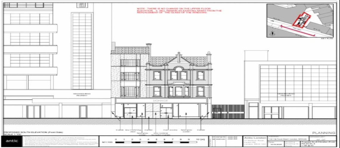 | 23/3788/NM | An application submitted under Section 96a of the Town & Country Planning Act 1990 for a non material amendment in connection with the planning permission dated 23/11/2020 (Reference: 20/0027/F) for [Change of use from retail (A1) to a Public House (A4) at ground floor and basement and 4 self-contained flats (C3) on the 1st-3rd floors together with construction of a second floor rear extension, replacement of the shopfront, installation of an extractor flue on the roof, installation of windows to the rear and side elevations, addition of an external staircase at the site, addition of an inset roof balcony, installation of 1 new rooflight, addition of two new entrances to basement at the side, and provision of associated waste and cycle storage and external amenity space. [RE-CONSULTATION: AMENDED DESCRIPTION AND DRAWINGS - PROPOSAL MERGED WITH APPLICATION 16/3672/F] to allow: The reduction in the size of one window at the rear facade and slight relocation of the bins at the front façade to facilitate the residential entrance to the upper floors which include a minor change to the façade. |