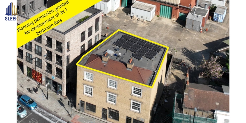 The property comprises a 999 year leasehold interest of the roof space. Planning permission is granted for the construction of a single storey roof extension to provide a new 3rd floor of 2x 1 bedroom flats of 533 & 538 sq ft respectively
