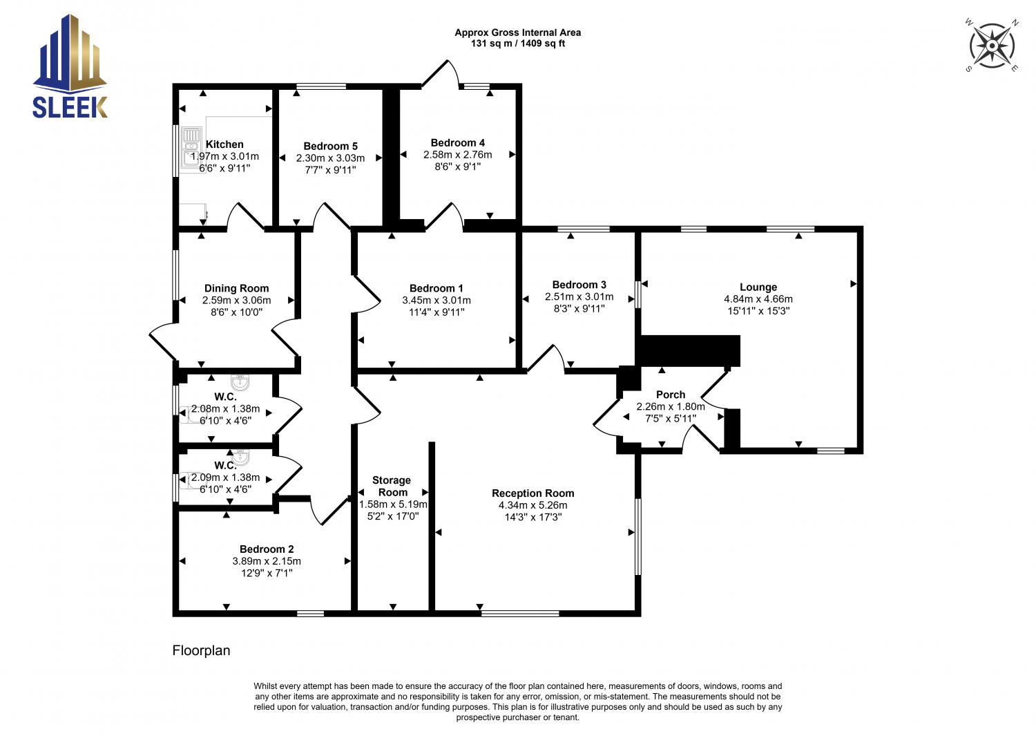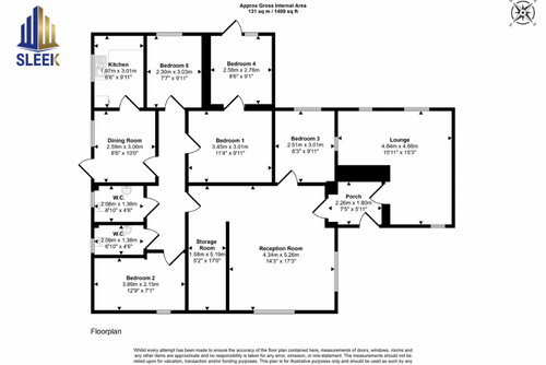 Ground Floor - Five Bedrooms, Kitchen, Dining Room, Lounge, WC, WC, Storage Room, Porch. |